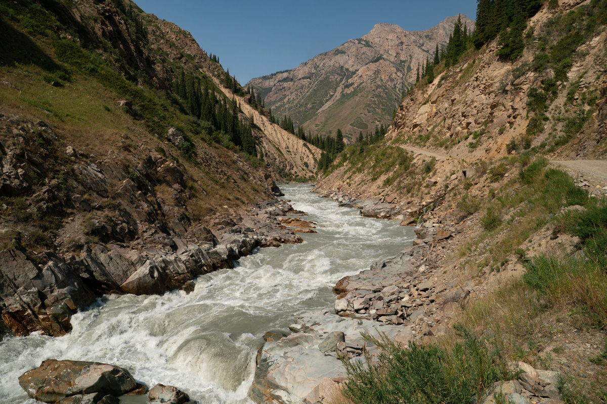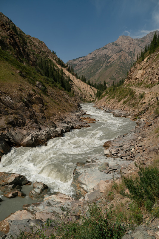 A significant rapid on the Little Naryn marks the transition between the upper and lower sections.