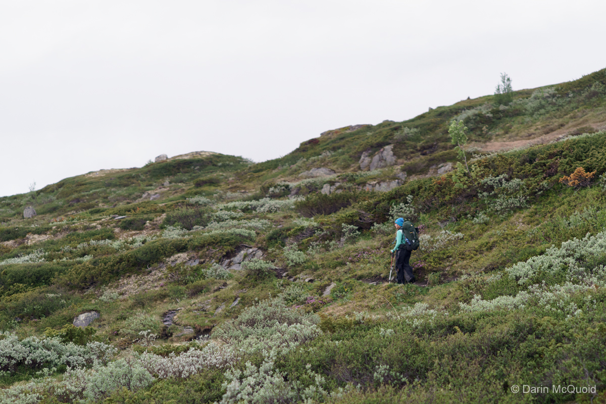dark, but it certainly is dim out. We push on up the trail, taking a